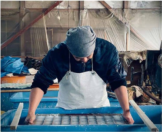 和紙の原料は楮(こうぞ)や三椏(みつまた)、麻や竹などの植物で、洋紙に比べて強くて軽く、厚いものだと簡単には破れず、耐久性が高いのが特徴。また柔軟性や安定性もあり、絵画や書物などの文化財を修復する素材として、世界中で活躍しています。