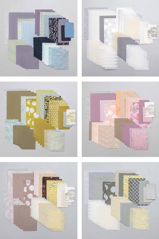 手漉きのもの、活版印刷されているもの、メタリックなプリントがされたものなど、表情豊かな和紙をたっぷりアソート