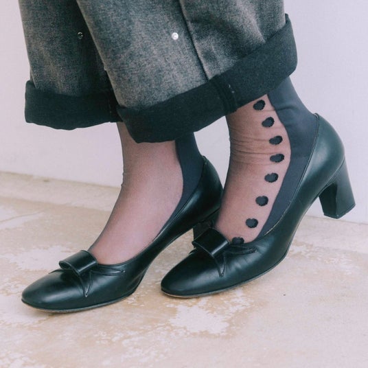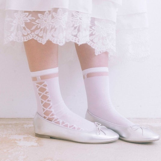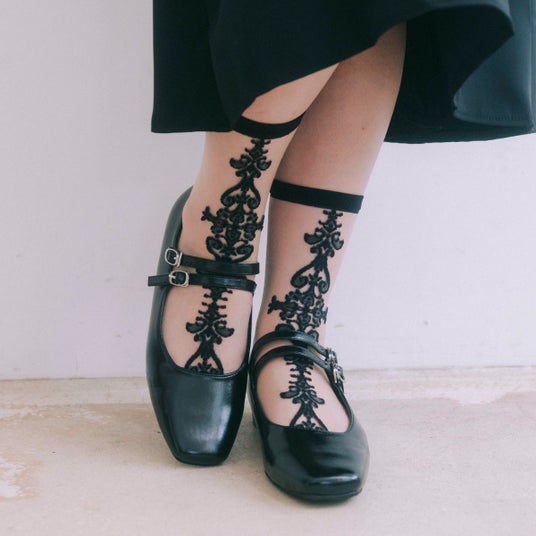モノトーンながらさりげなくアクセントになる、魔導士の衣装や魔法をイメージした柄の靴下です。シースルー生地に糸を重ねて柄を表現しているので、凹凸感があり刺しゅうをされているような高級感があります。