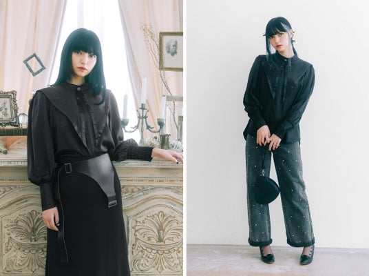 魔法部 魔導士の気品をまとう ビッグカラーブラウス〈ブラック〉