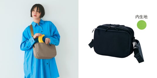 デザインは〈ブラック〉〈ネイビー〉〈ベージュ〉の3種類。それぞれ内生地のカラーを変えることで「使うたびに楽しい気持ちになれるように」と田中さんの工夫も。表面は、雨の日にも便利な撥水加工素材です。