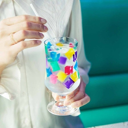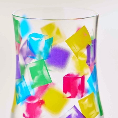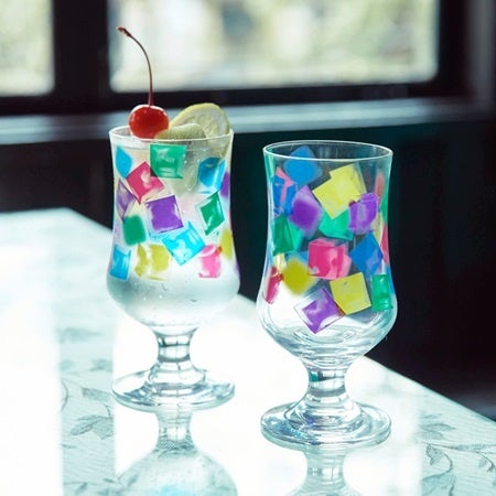 1975年に誕生したあこがれのゼリーポンチをおうちで楽しむことができるグラスです。ゼリーポンチのサイダーの中で宝石のようにきらめく5色のゼリーにこだわり、店主お墨付きの脚付きグラスに再現しています。ソーダを注ぐだけで華やかなゼリーポンチが現れるデザインです。ドリンクはもちろん、花を飾ったり、インテリアとしても活躍します。