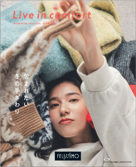 フェリシモが展開するファッションブランド「Live in comfort[リブ イン コンフォート]」は、カタログ『Live in comfort 冬の増刊号』を発刊、コラボアイテムのウェブ特集を12月5日に公開し、冬の新商品のウェブ販売を行っています。シンプルライフ研究家マキさんと作ったロングシーズン着まわせる「裏フリースジャケットコート」や、モデル山本莉子さんと作った「パリの蚤の市にありそうなアンティーク風ジャケット」。スタイリスト石上美津江さんと作った北欧柄やケーブル編みなど3種類の「そろえておきたいいろいろニットトップスの会」のほか、軽くてやわらかな「ふかふかキルティングショルダーバッグ」や、シリーズ累計販売数72万本突破(※2024年9月末時点)の「あったかすっきり裏ボアパンツ」などもラインナップしています。アイテムの詳細はウェブサイトとデジタルカタログでチェックできます。3ヵ月ずっと特別価格になる「3回エントリーキャンペーン」や、新アイテムほかを一緒に買うとお得に購入できる「いっしょ買いキャンペーン」、色・サイズ・デザイン違いでも可能な「まとめ買いキャンペーン」も行っています。