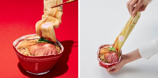 麺の部分はゴム入りで、先端は噛むとピーピー音が鳴るラーメン風のおもちゃ。器はしっかりした生地で持ちやすく、中身はやわらかめの生地なので、引っ張りっこにもぴったりです。