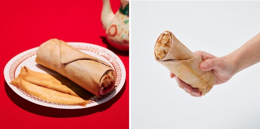 こんがりきつね色に揚がった春巻き風のおもちゃ。犬が両手で押さえて噛みやすい形とサイズです。皮の部分はパリパリとした音が鳴るので、噛むほどにテンションが上がりそう。