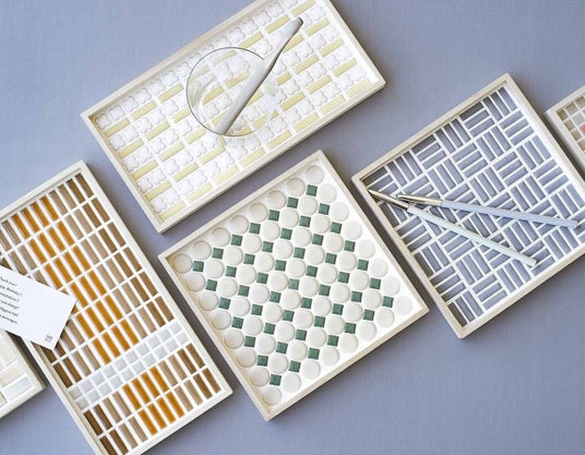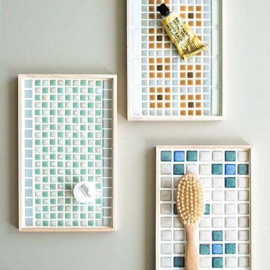■素材 / タイル:ガラス、大理石、BI類(磁器質)施釉など 木製トレイ:桐、ファルカタ合板 目地剤:セメント
