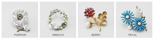 ほんのりレトロな趣が、装いに愛らしさを添えてくれるピンブローチ。オリジナルの型であつらえた土台金具に、テグスやワイヤーでガラスビーズを留め付けて作るキットです。土台金具は茎や葉の細部までこだわったデザイン。ぷっくりつやつやしたビーズをひと粒、またひと粒と留め付けていくたび華やかさが増して、お花を咲かせている気分。