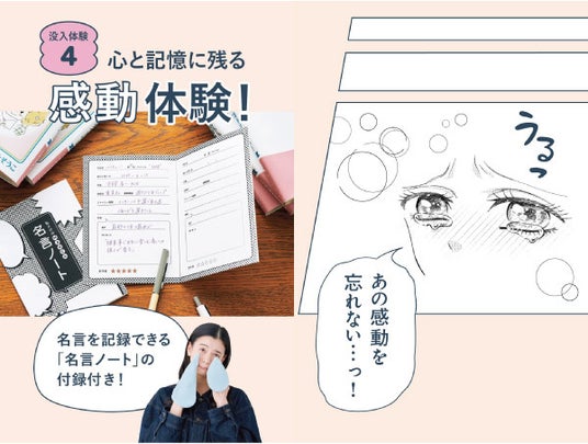 漫画の名シーンで必ずといっていいほど出てくるのが、名ゼリフ。漫画作品に出てきた心に残るセリフを記録できる「名言ノート」が付録で付いてきます。そのシーンの感動や、セリフと出会ったときの衝撃などを書き残しておくことで、自分だけの特別な名言ノートが完成。いつでも振り返ることができます。