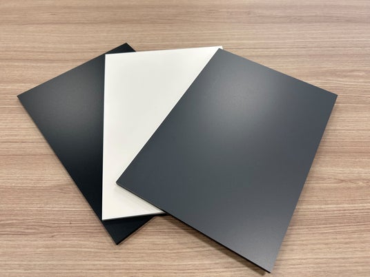 - 面状が平滑なマット色で、熱成形後もマット面状は失われません。屋外設置の際に、太陽光や自動車のヘッドライトの反射光を低減できます。