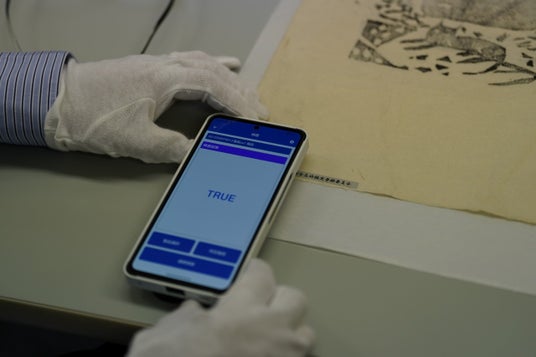 従来の鑑定方法では、鑑定のたびに紙の鑑定書を直接作品に貼付し、証印・割印をしていましたが、作品や鑑定書が偽造されたり、正規の鑑定書が剥がされて贋作に貼られたりするケースがあり、偽造対策と作品の損傷が課題となっていました。また、鑑定や学術研究のうえでは作品の来歴も重要ですが、過去にいつ誰が鑑定したのか、膨大なデータや資料から履歴を照合することが大きな業務負荷となっていました。
