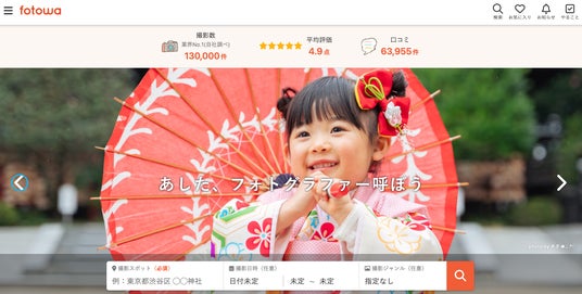 「fotowa」は、撮影して欲しい人とプロのフォトグラファーをつなぐ、家族・子ども向けの出張撮影プラットフォームです。シンプルな料金設計と、好きな場所に好きな作風のフォトグラファーを指名して撮影予約ができるのが特徴。