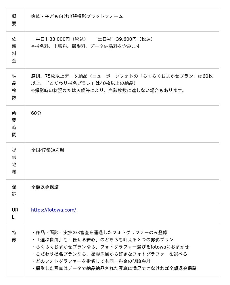 ■ 家族・子ども向け出張撮影プラットフォーム「fotowa」について