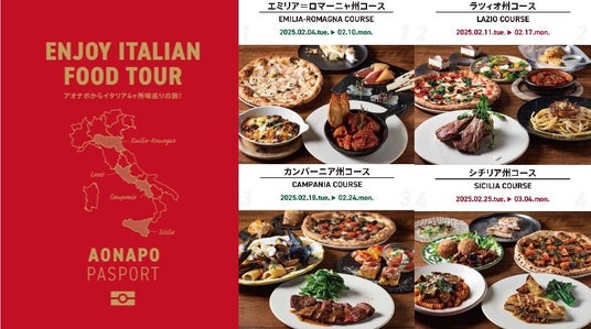 株式会社バルニバービ(本社:大阪市西区、代表取締役会長 佐藤裕久)は、大阪・天王寺公園「てんしば」内のピッツェリア&トラットリア「青いナポリ イン ザ パーク」にて、イタリア4州の伝統料理を週替わりで楽しめるシェアコース "ITALIAN FOOD TOUR" を、2025年2月4日(火)~3月4日(月)の1カ月間、期間限定で提供いたします。