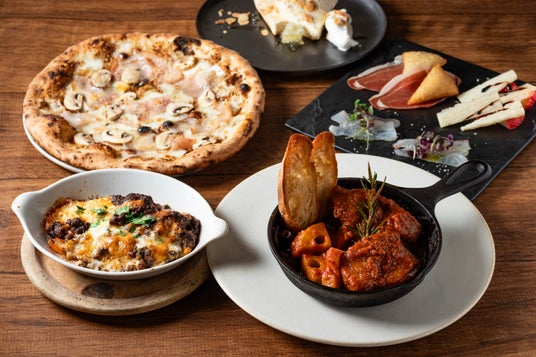 緑に囲まれたロケーションで、職人が高温の薪窯で一気に焼き上げる本格ナポリピッツァや、新鮮な野菜や魚介を使ったイタリアンメニューが楽しめます。