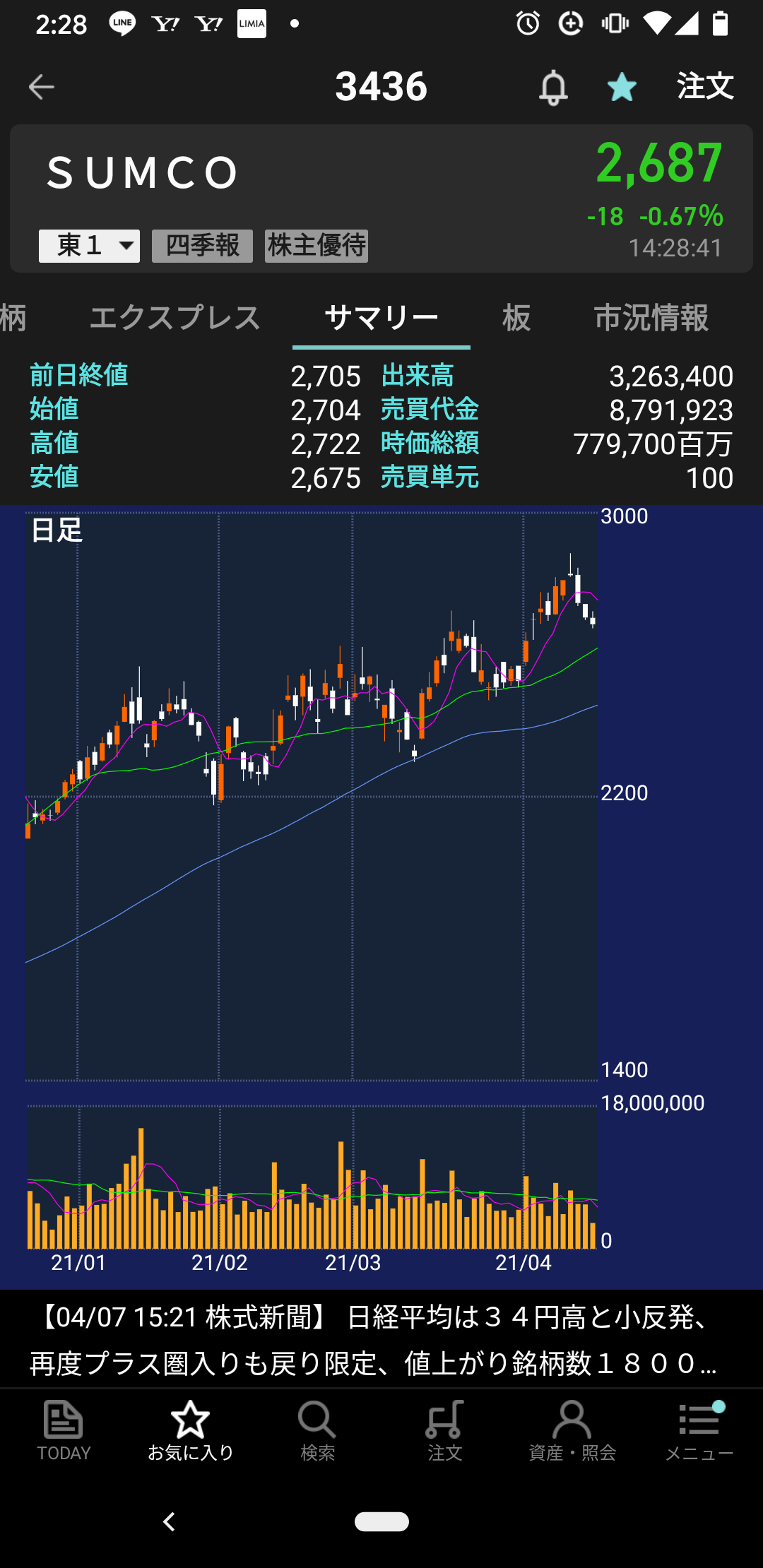 SUMCOの株を取引したことがありますか?みんかぶアセットプランナーに取引口座を連携すると売買履歴をチャート上にプロットし、自分の取引を視覚的に確認することができます。