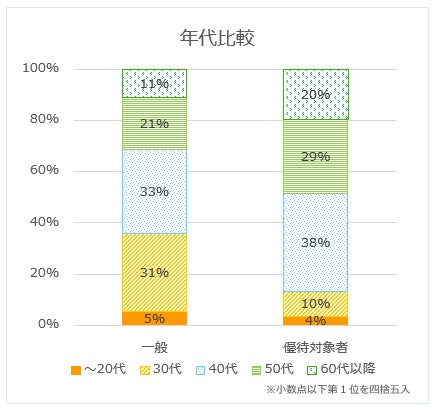 但し、一般投資家では30代も31%と存在感が大きかった一方で、株主優待対象者では50代が29%、60代以降が20%と中高年の割合が高かった。