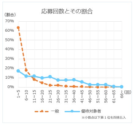 一般投資家は計5回までの方が60%を超え、6回以上応募された方の割合は急減する。