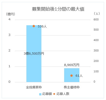 (3)募集開始後1分間の最大値(応募額、及び応募人数)