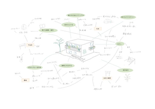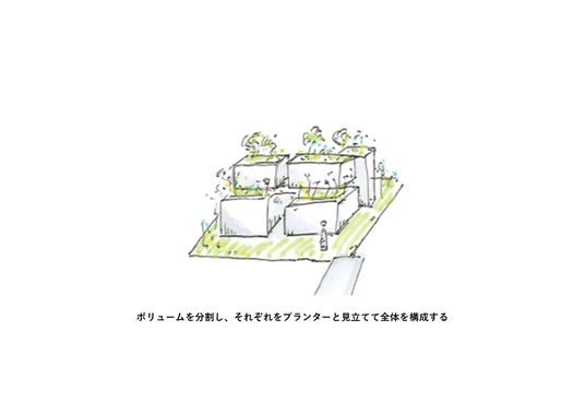 下北沢駅から本物件へ向かうと、次第に視界が広がり、緑を感じられるようになります。この立地に溶け込むように、本物件の外観はプランターと見立てて構成しました。日常的に植物を身近に感じられる、心地よい暮らしが広がる空間です。