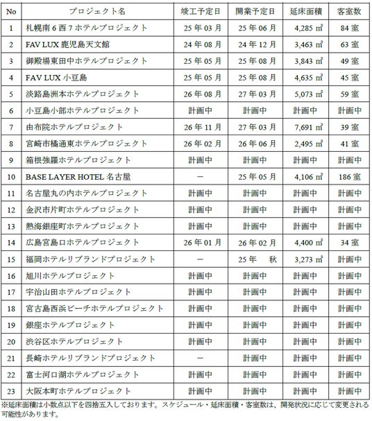 上記ホテル3物件の売上につきましては、2025年8月期連結業績予想に織り込み済みです。なお、履行義務の充足(売却決済)時点に売上を計上いたします。
