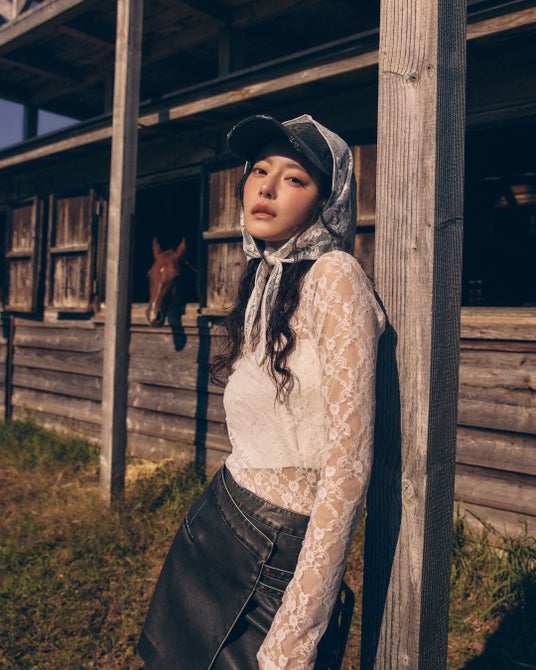 スエードライクなセットアップやサイドスタッズを施したデニムなど、90年代のムードを呼び起こすヴィンテージ感漂うアイテムを軸に、レイヤードスタイルも楽しめるレースアイテムや華奢見えするレイヤードブーツ、ガーリーな印象ながらもエッジの効いた風合いのギャザーが施されたバッグなどトータルコーディネートが叶うこだわりの詰まった全14型を展開いたします。