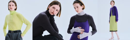 左よりヘンリータートルネックロンT/タートルネック ロンT/ドッキング タートルネック ロンTとリバーシブルキャミソールワンピース/ショートカーディガンとリバーシブルキャミソールワンピース