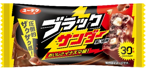 有楽製菓株式会社が展開する「ブラックサンダー」は、幅広い年代の方から支持されている、2024年9月に発売30周年を迎えたロングセラーチョコレート菓子です。ココアクッキーとプレーンビスケットをチョコレートでコーティングした、ココアのほろ苦さとチョコレートの甘みがマッチした食べごたえのあるチョコバーで、甘さと圧倒的ザクザク感がおなかもココロも満たします。
