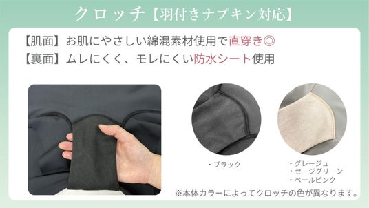 辛いブルーデーを少しでも快適に過ごして頂くために、縫製仕様にもとことんこだわりました。