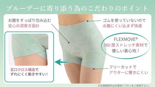 総合繊維メーカーである素材の強みを生かした、快適でお洒落なフェムテック商品を展開しています。