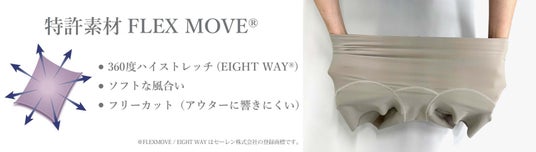 360度ハイストレッチ特許素材「FLEXMOVE(R)」を使用し、優しい肌あたりと、抜群の着心地を実現。