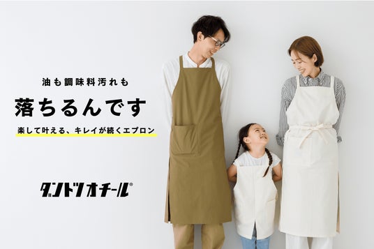 小松マテーレ株式会社(本社:石川県能美市、代表:中山大輔)は、この度、アタラシイものや体験の応援購入サービス「Makuake」にて、KONBU(R)のトートバッグに続き、第3弾として「ダントツオチールエプロン」を先行発売いたしました。ユニフォーム業界で評価される新防汚加工素材「ダントツオチール(R)︎」を用いて家庭用エプロンを製作しました。汚れが付きにくく、落ちやすいという特徴で、いつも通りの簡単なお手入れでも、本来の美しさが続きます。本製品を通して、皆様の日常生活をより豊かにしてまいります。