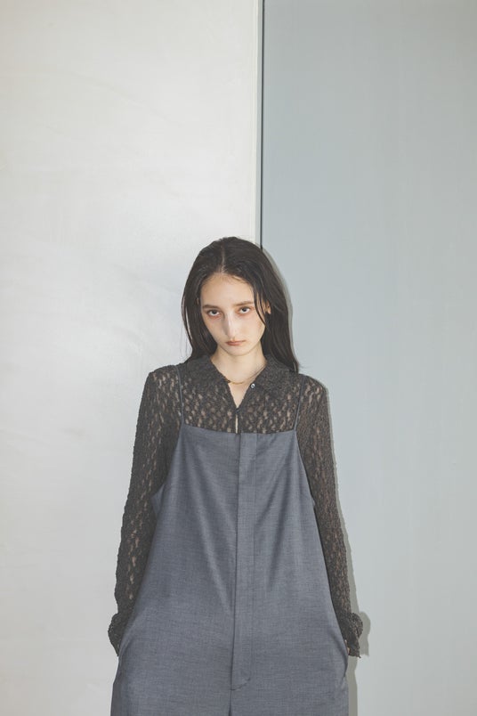 シュリンクレースシャツ ¥13,750(税込) カラー:チャコール・アイボリー サイズ:F