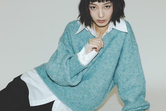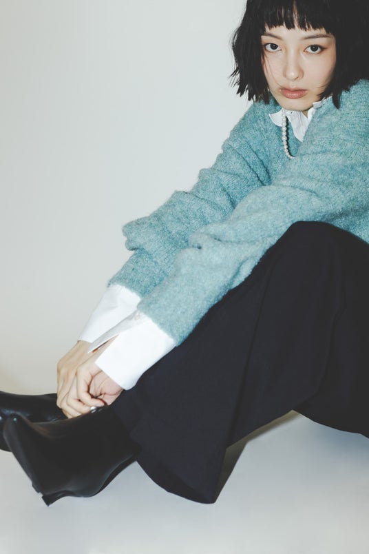 ブークレVネックニットプルオーバー ¥10,230(税込) カラー:ライトベージュ/モカ/グリーン サイズ:F