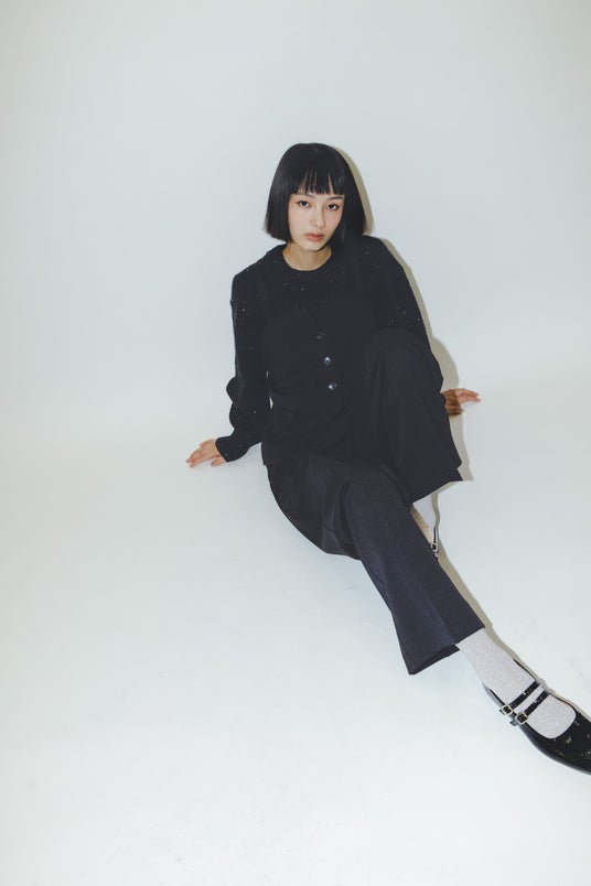 ニットキャミワンピース+ニットポロカーディガンSET ¥17,050(税込) カラー:チャコール/ベージュ サイズ:S/M