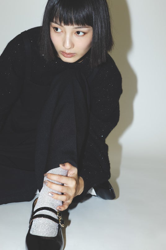 スパンコールラメニットプルオーバー ¥12,100(税込) カラー:ブラック/ベージュ サイズ:F