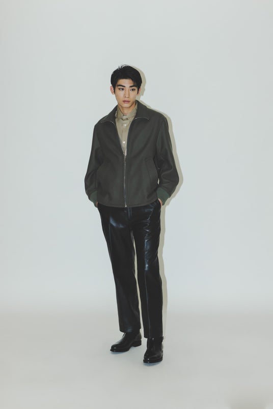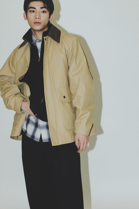 ハードプレスメルトンジップアップブルゾン¥47,300(税込) カラー:ブラック/カーキ サイズ:M/L