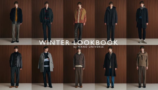 ナノ・ユニバースからスペシャルな冬コレクション 12LOOK をご紹介。シックな色使い、大胆なレイヤードで洗練された冬のスタイルを一新