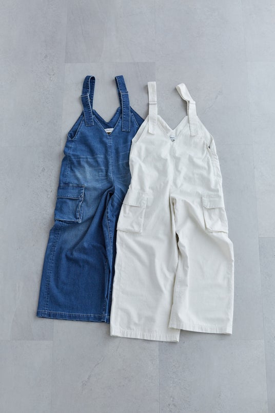 (左)オーバーオール ¥27,500(税込) ネイビー/ホワイト M