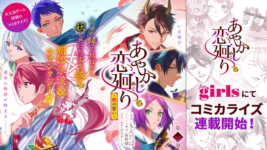 「あやかし恋廻り」(以下「あや恋」)を原作としたコミカライズ作品「あやかし恋廻り 暁の誓い」(以下「本作」)を12月7日(土)より株式会社KADOKAWA(本社:東京都千代田区、取締役 代表執行役社長 CEO:夏野剛)が提供するKADOKAWA カドコミ「 for girls」にて連載を開始したことをお知らせいたします。