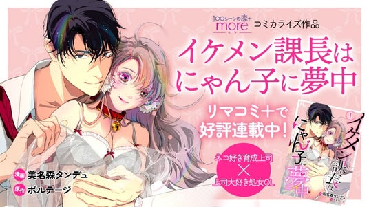株式会社ボルテージ(本社:東京都渋谷区 代表取締役:津谷 祐司)は、提供中のボル恋タイトル「100シーンの恋+more」内にて配信中の「イケメン課長はにゃん子に夢中」 (以下「にゃん子」)を原作としたコミカライズ作品の連載が、株式会社集英社(本社:東京都千代田区 代表取締役: 廣野 眞一)の総合配信サイト「リマコミ+」にて2月8日(土)より開始していることをお知らせいたします。