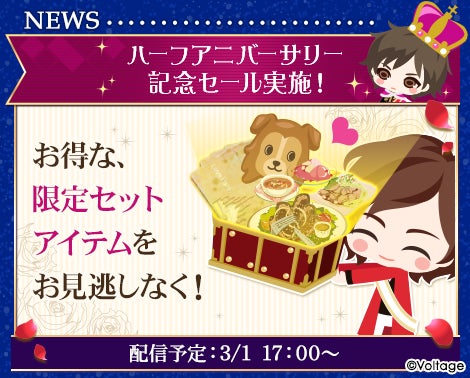 支えてくださったファンの皆様へ感謝を込めて、3月のハーフアニバーサリーは「ノーブルパンフェスタ」をテーマに、パンを大好きなカレに贈ると限定アバターが手に入るイベントや、カレとの新しいストーリーが楽しめる特典のご用意などハーフアニバーサリーを記念した様々な企画を多数ご用意しております。