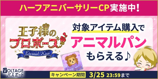 毎日の胸きゅんが貯まる!無料会員ポイントサイト「VOLTAGEパスポート」(以下、「ボルパス」)にて「王子様のプロポーズ Eternal Kiss」ハーフアニバーサリー応援キャンペーンを開催しております。