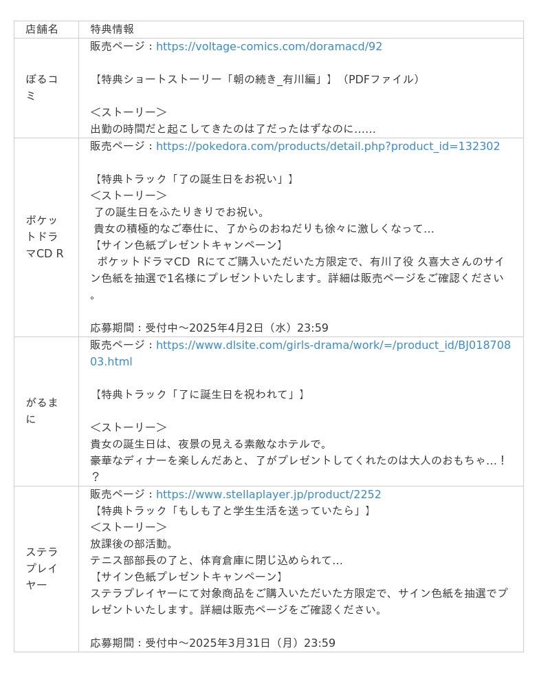 販売サイト:ぼるコミ、DLsiteがるまに、ポケットドラマCD R、ステラプレイヤー