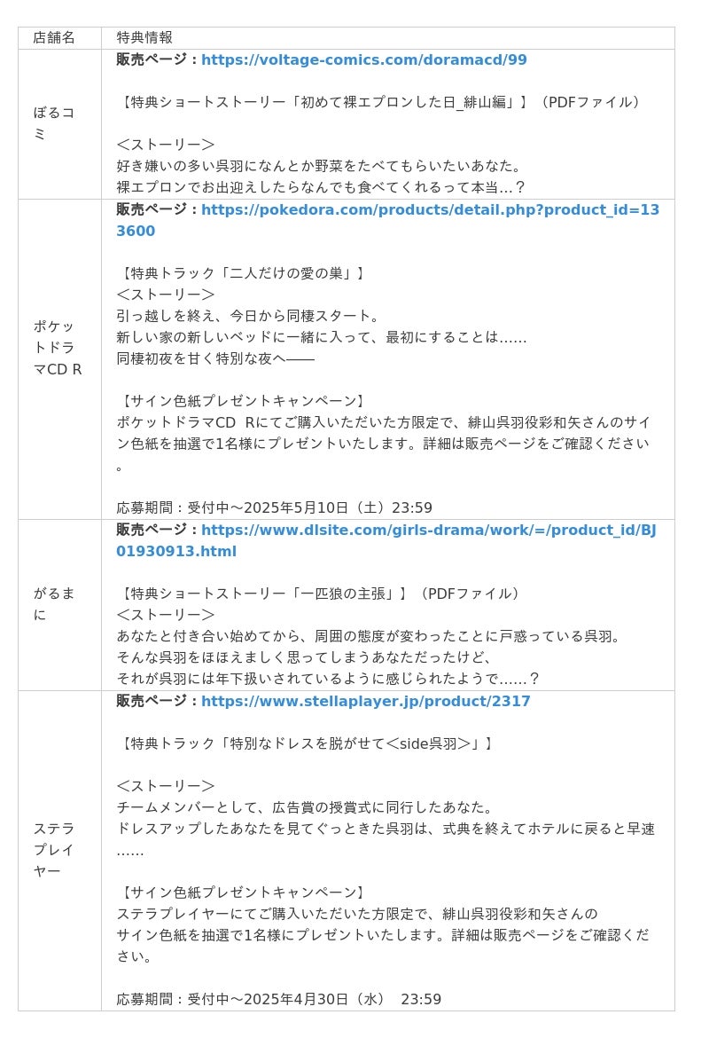 販売サイト:ぼるコミ、DLsiteがるまに、ポケットドラマCD R、ステラプレイヤー