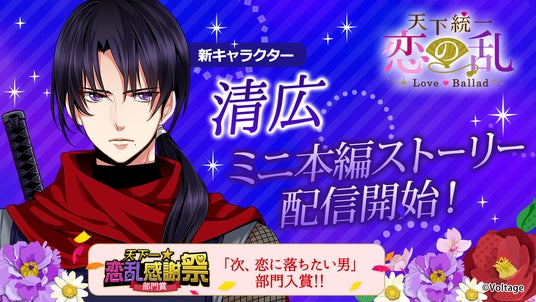 「天下統一恋の乱 Love Ballad ~華の章~」にて清広のミニ本編ストーリーを5月26日(月)より配信開始したことをお知らせいたします。
