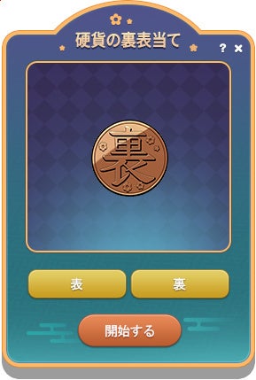 ■硬貨の裏表当て(10月16日(水)メンテナンス後開始予定)…硬貨の裏表当てミニゲームをプレイする