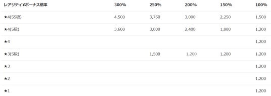 本セールガチャのレアリティ別、earnボーナス倍率別の排出確率は以下の通りです。