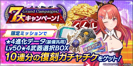 ログインすると初日に「S級以上★4確定ガチャチケット」がもらえるなどお得なキャンペーンとなっておりますのでこの機会にぜひご利用下さい。