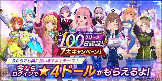 なお、ログインで最大100連分のガチャチケットがもらえる他、育成に役立つ「リリース100日直前7大キャンペーン!」も引き続き開催中ですので、この機会にS級以上★4ドールをゲットし、最強の部隊を作りましょう。