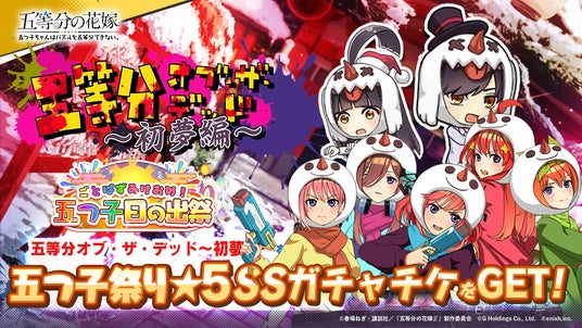 株式会社enish(本社:東京都港区、代表取締役社長:安徳 孝平、以下enish)は、2025年1月1日(水)より、アニメ「五等分の花嫁」初となるゲームアプリ『五等分の花嫁 五つ子ちゃんはパズルを五等分できない。』にて、「あけおめ!五つ子日の出祭」を開催中です。新春を祝う様々なキャンペーンを用意しておりますので是非お楽しみください。